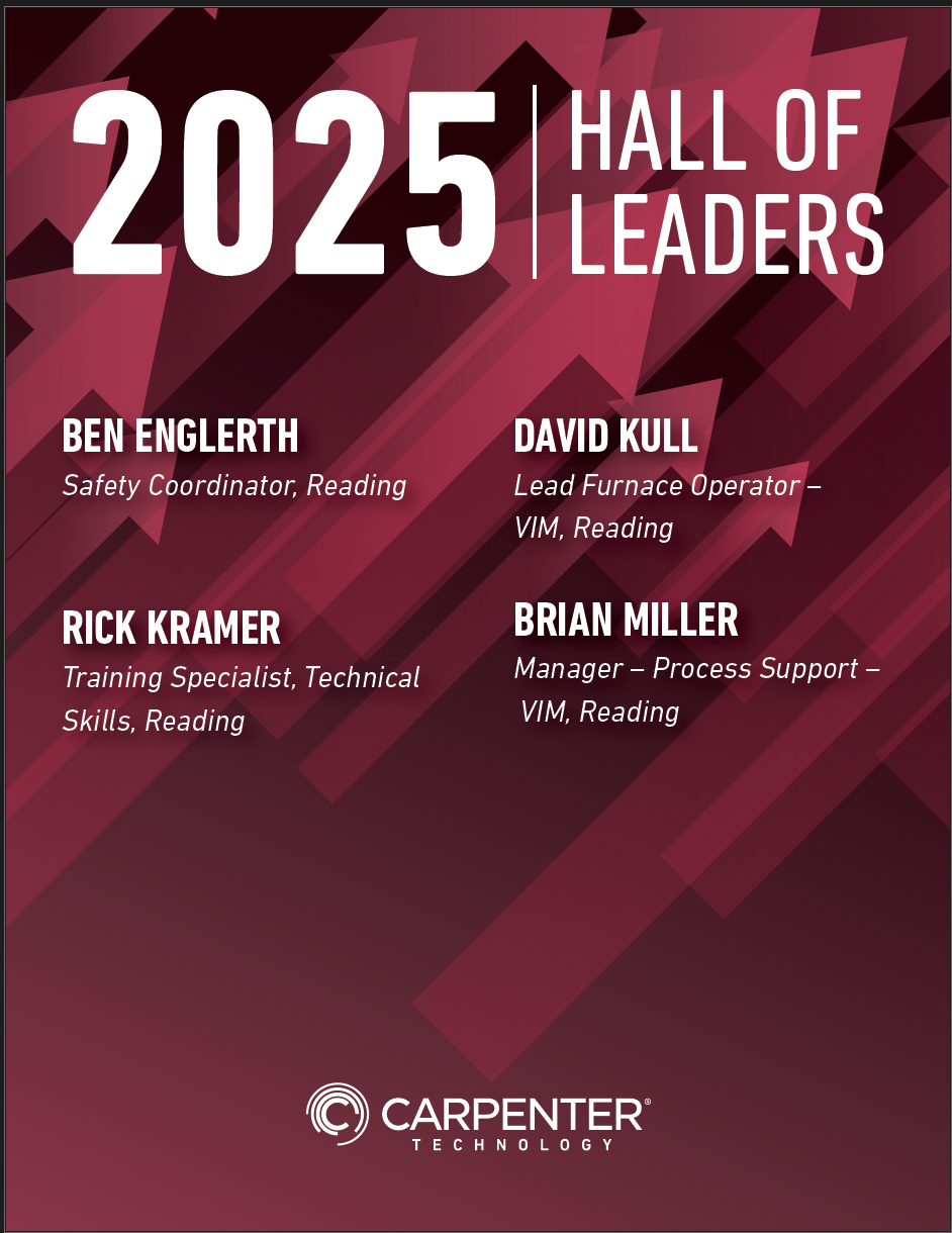 The Hall of Leader inductees are selected by the CEO and embody Carpenter Technology’s Core Values.
